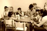group of kids having lunch in kindergarden