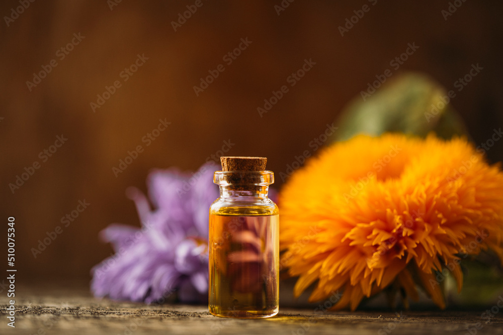 Oil bottle. Spa concept. Aroma. Bottle. Essential.