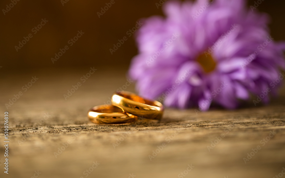 wedding rings on a flower