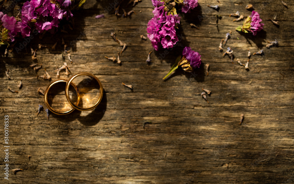 wedding rings on a flower. Gift. Wedding day. Ring. Photo.
