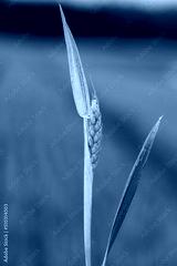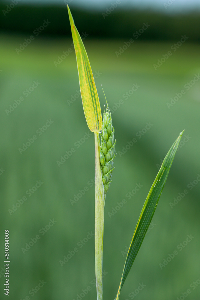Discolored leaves of spring wheat caused by nutrient deficiencies or infection by a crop pathogen.
