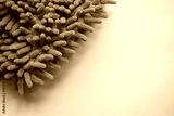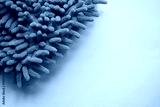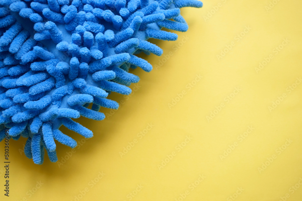 Yellow and blue background. Fluffy blue floor cloth and yellow dust cloth. Home cleaning.