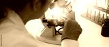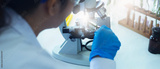 Close up on hands woman Scientist Looking Under Microscope in Laboratory