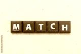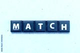 Tile alphabet letter in word match on wood background