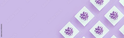gift boxes banner on pastel light purple background top view with place for advertising text