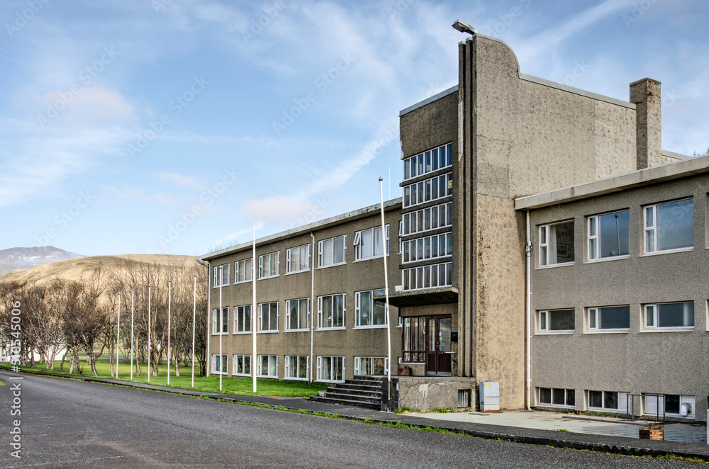 Skogar, Iceland, April 24, 2022: historic building of boarding school, now in use as a hotel