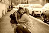 Mother hugs her young son on the way to school, and a mother and boy say goodbye before school.