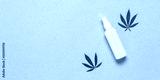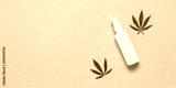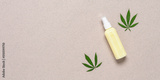 Cannabis hemp creams with marijuana leaf. Beige craft background. The concept of eco cosmetics. Top view, flat lay, banner.