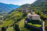 Sondrio, Valtellina, Italy, Aerial view of Sondrio and the Convent of S. Lorenzo