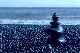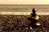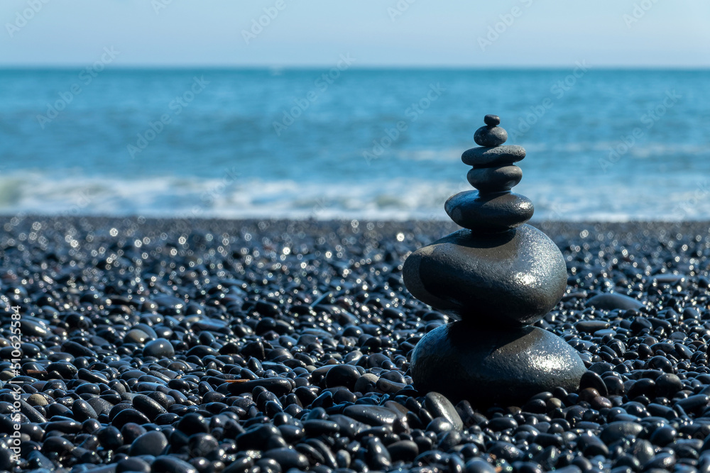 Balanced stones on Reynisfjara black beach in Iceland