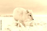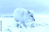 Wild arctic fox (Vulpes Lagopus) in tundra in winter time. White arctic fox.