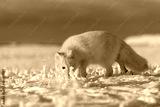 Wild arctic fox (Vulpes Lagopus) in tundra in winter time. White arctic fox.