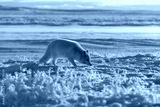 Wild arctic fox (Vulpes Lagopus) in tundra in winter time. White arctic fox.