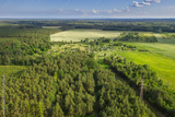Pola i łąki wiosną widziane z dużej wysokości. Zdjęcie z drona.