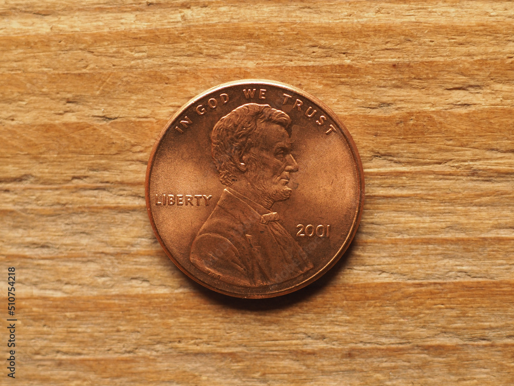 1 cent coin, obverse side showing Lincoln, currency of the USA