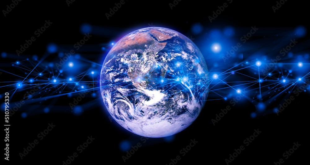 earth and network of internet satellite for telecom,globe data cloud storage of 5g, global networking of social data communication, Elements of this image furnished by NASA