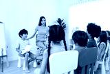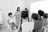 Asian beautiful young woman teacher teaching a lesson to kid at school