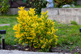 Euonymus. Evergreen colourful decorative dwarf plant in garden. Garden background