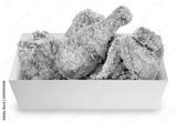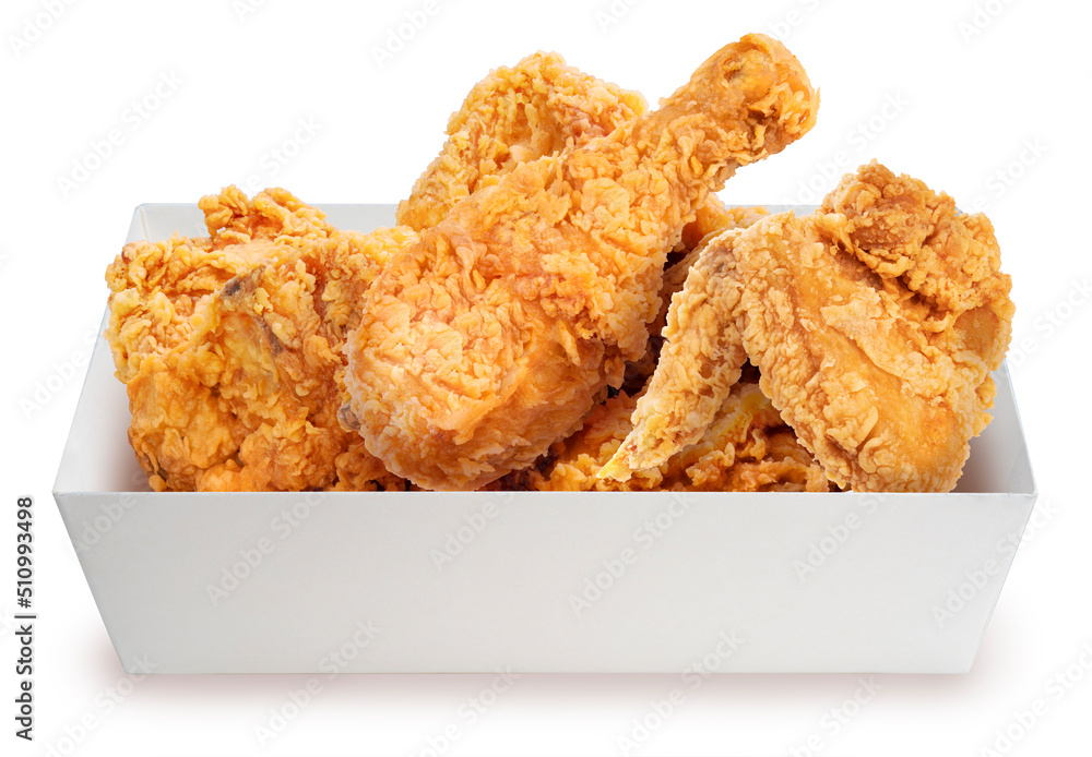Fried chicken in paper box isolated on white background, Fried chicken on paper bowl for delivery, With clipping path.