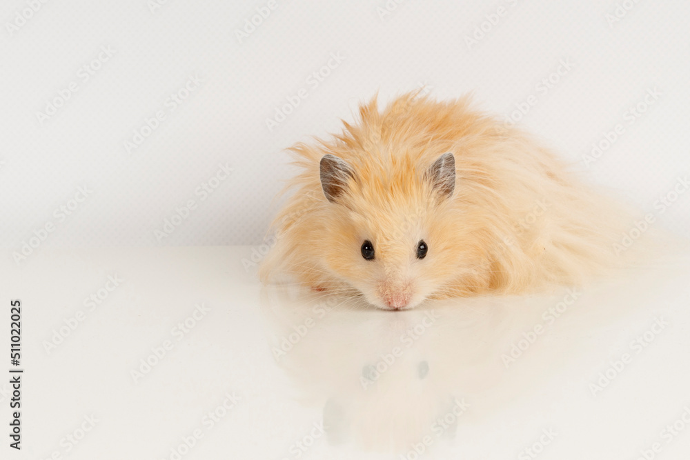 fluffy Syrian hamster on a light background