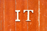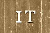Alphabet letter in word IT (Abbreviation of information technology) on old red color wood plate background