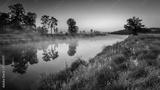 Wschód słońca nad rzeką Wartą. Słońce, mgła i rzeka o świcie