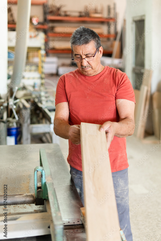 A Bald man with emotion face holding white board in his hands to fill your text. Isolated on blue background.