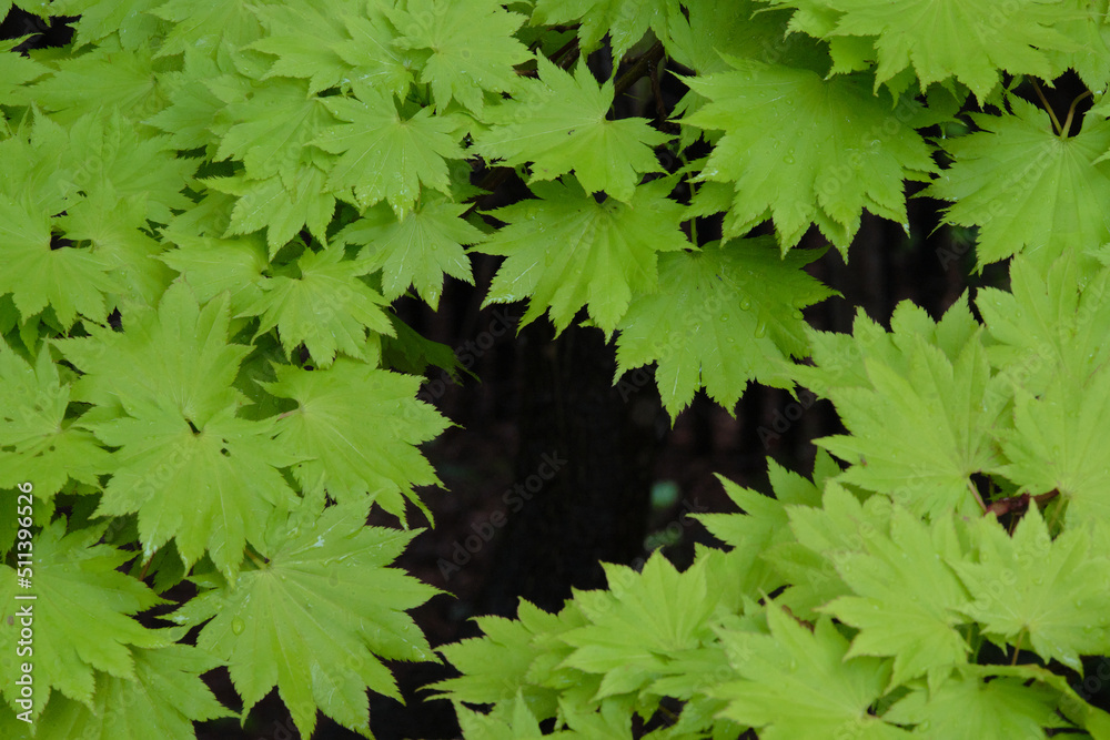 平岡樹芸センターの雨に濡れたチシオモミジ / Acer palmatum ‘Chisio’ wet in the rain at Hiraoka arboriculture center