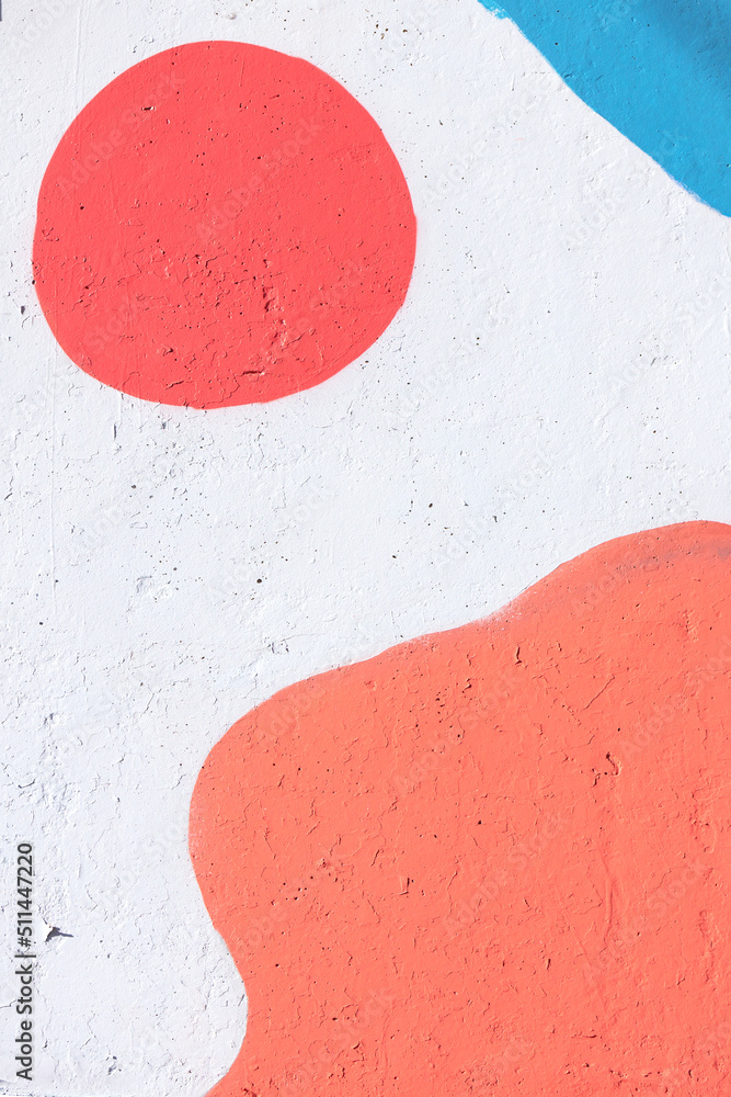 Closeup of colorful blue, red and white urban wall texture. Modern pattern for wallpaper or mockup presentation design. Creative urban city background. Abstract open composition.