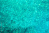 Blue, turquoise transparent water surface of ocean, sea, lagoon. Horizontal background. Top view of sand beach. Aerial, drone view