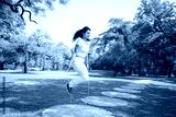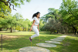 Young indian fitness woman wearing white sportswear skipping rope at park , Asian female Jumping exercise outdoor.