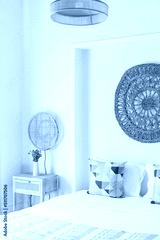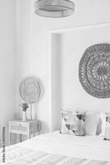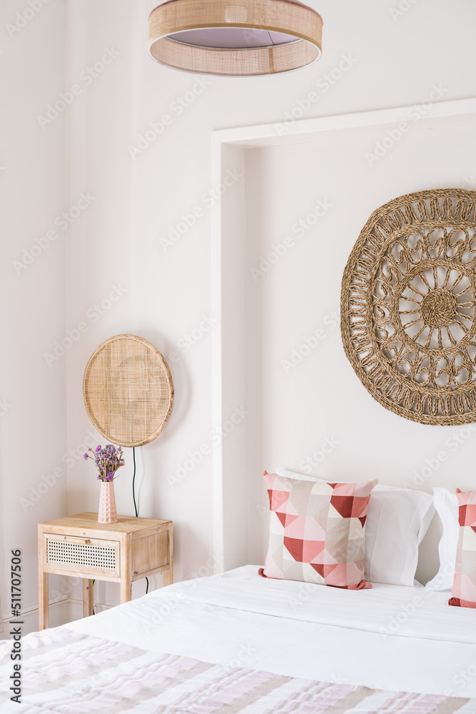Stylish bed and bedside table in Feng Shui styled house