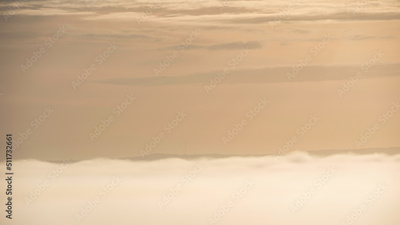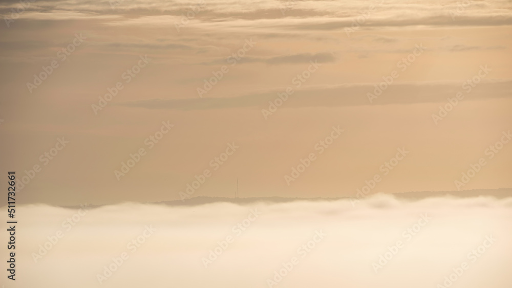 Beautiful vibrant landscape image of sea of fog rolling across South Downs English countryside during Spring sunrise