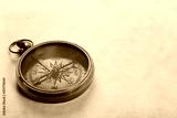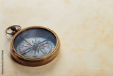 Antique compass on old paper background