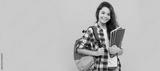 day in high school. schoolgirl with notebook and backpack. back to school. teen girl ready to study. Banner of school girl student. Schoolgirl pupil portrait with copy space.