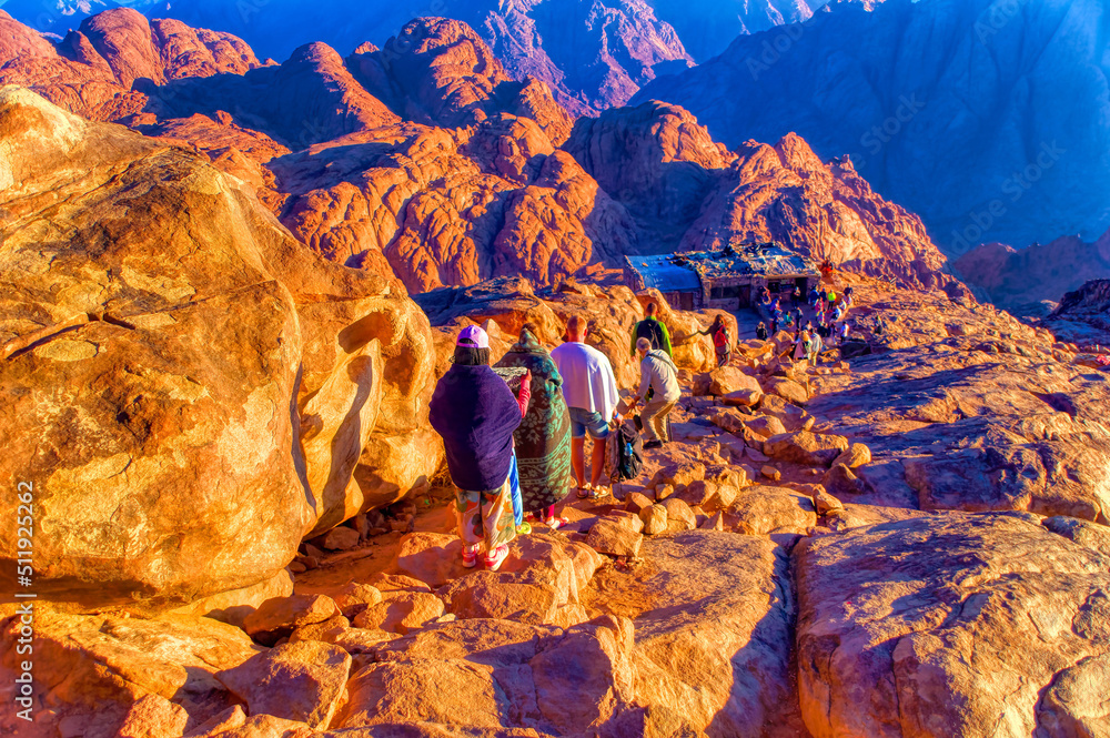 Tourists are going down the path of Jabal Musa or Mount Sinai in Egypt.