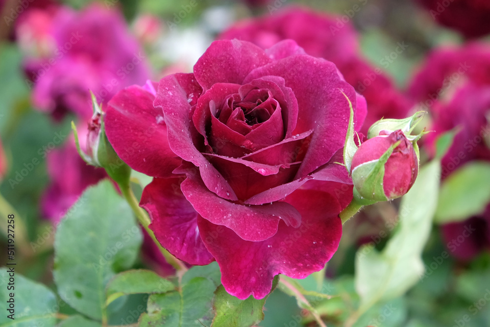 Red Rosa 'Munstead Wood' in flower
