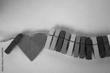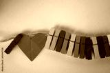 Heart and clips. A Red heart attached and hanging on natural rope with colorful wooden paper clips on pink background.