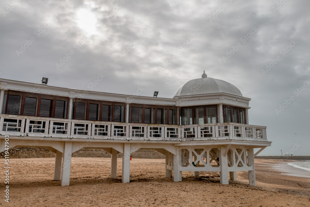La Caleta bathhouse, in Cadiz, Spain, is a beautiful historic building on the seashore
