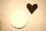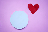 Blank white circle paper with red love heart shape on purple background. Valentines Day, anniversary and any cards concept. Copy space for your text design.