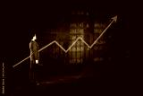 Businesswoman look at growth stock market graph