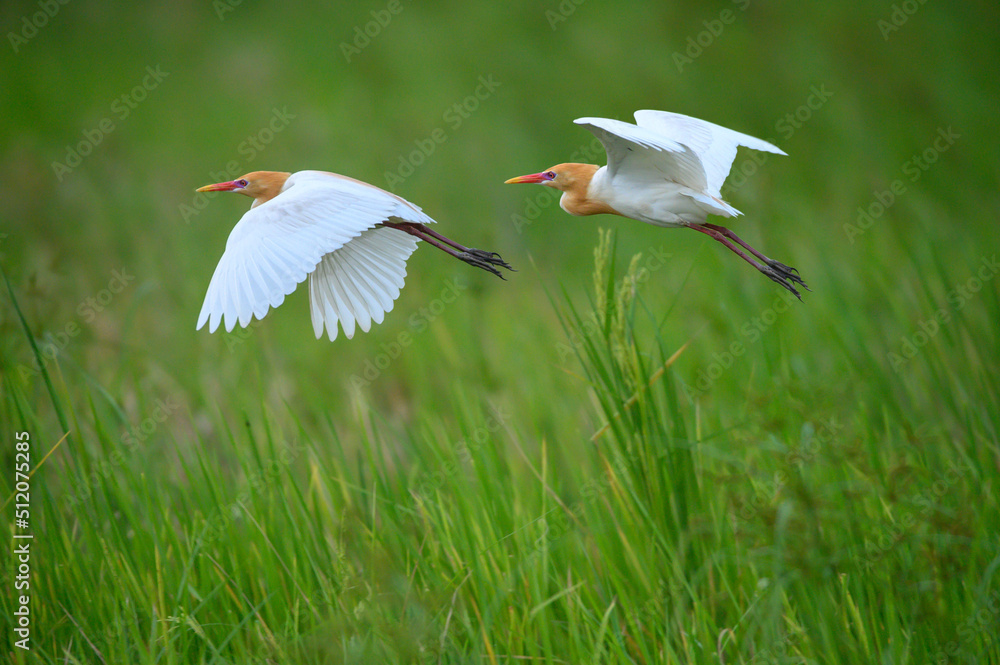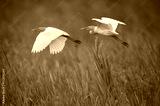 birds flying on a black background (Cattle Egret)