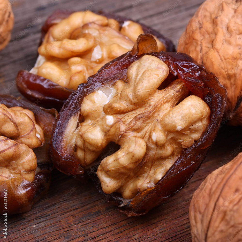 Datteln gefüllt mit Walnusskernen - gesunder Snack