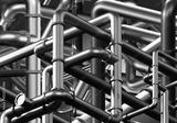 Textura pipes. Intertwining steel pipes Background. Labyrinth of pipes visualization. Background with pipeline. Steel texture with pipeline. Engineering communications background. 3d rendering.