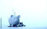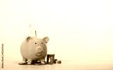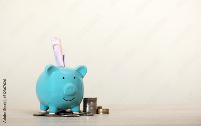 Banknotes are wearing green piggy banks and a pile of coins on a table, business, investment, finance, and Money Saving for future concepts..