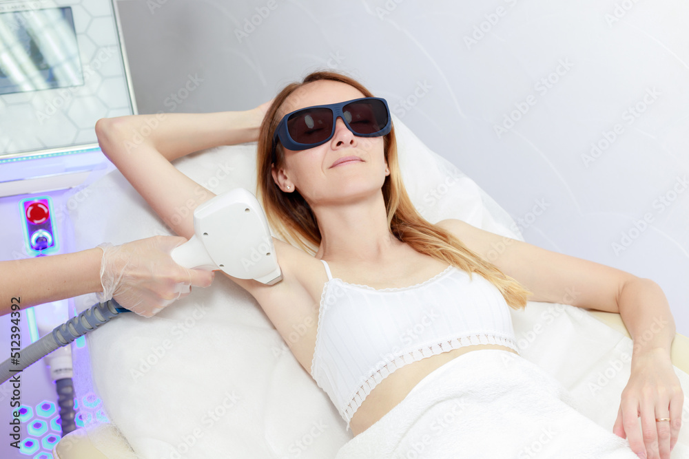 Woman on laser hair removal. Smooth skin under the arms.