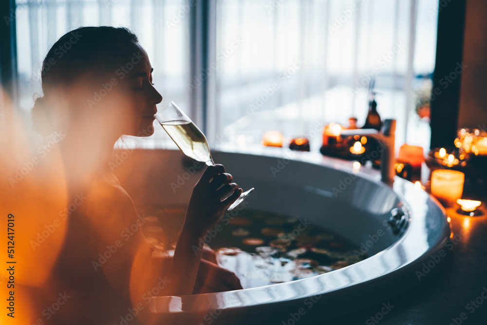 Beautiful woman relaxing at spa. Young lady relaxing in jacuzzi.