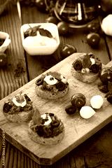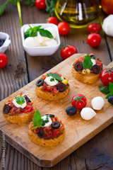 Bruschetta with mozzarella on chopping board