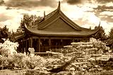 Chinese temple in the Chinese Garden section in Montreal Botanical Garden, Quebec, Canada