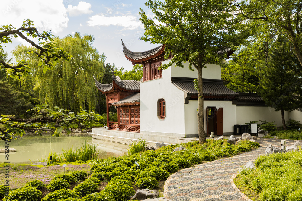 Chinese temple in the Chinese Garden section in Montreal Botanical Garden, Quebec, Canada